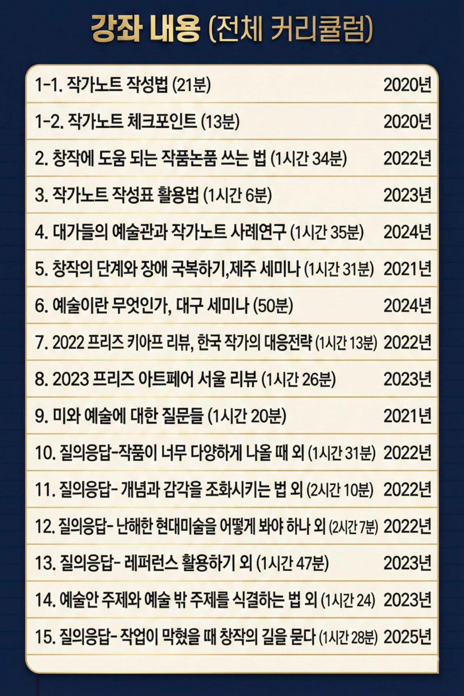 5 4강. 대가들의 예술관과 작가노트 사례연구 (1시간 35분) 2024년 구매필요